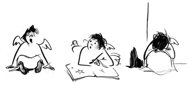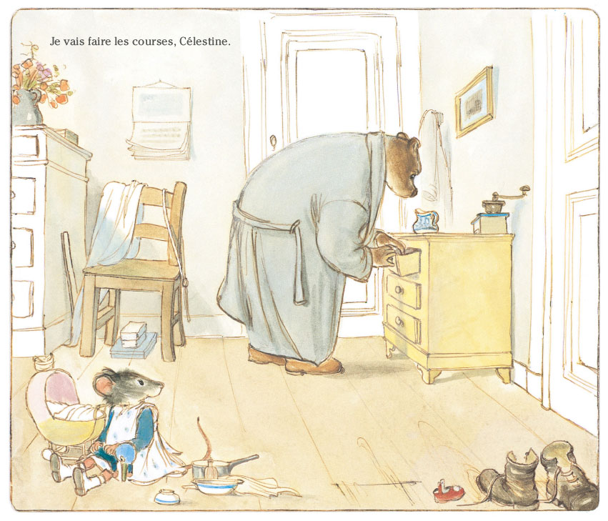 Martin based Ernest's personality both on her father and on her art teacher and mentor, Mr. De Smet. Just like the bear, her father was a musician. The name Ernest is also a nod to Martin's favorite children's book illustrator, Ernest H. Shepard (of 'Winnie the Pooh' fame). Célestine's behavior was inspired by Martin's own childhood memories. As extra inspiration, she observed her little nephews and nieces, who often stayed over. Sometimes she made them pose for drawings. Later in her career, Martin also made another children's book series, 'Papouli et Federico' (1994), about an elderly man who takes custody over a little boy. At first, he doesn't like the responsibility, but he eventually grows into the role. Remarkably enough, Martin never had children of her own. More than one observer has suggested that the 'Ernest and Célestine' and 'Papouli et Federico' books might have been an expression or compensation for her own child wishes. Though they could easily also be interpreted as a melancholic look at her own childhood. Ernest's house, for instance, was largely based on her own interior.