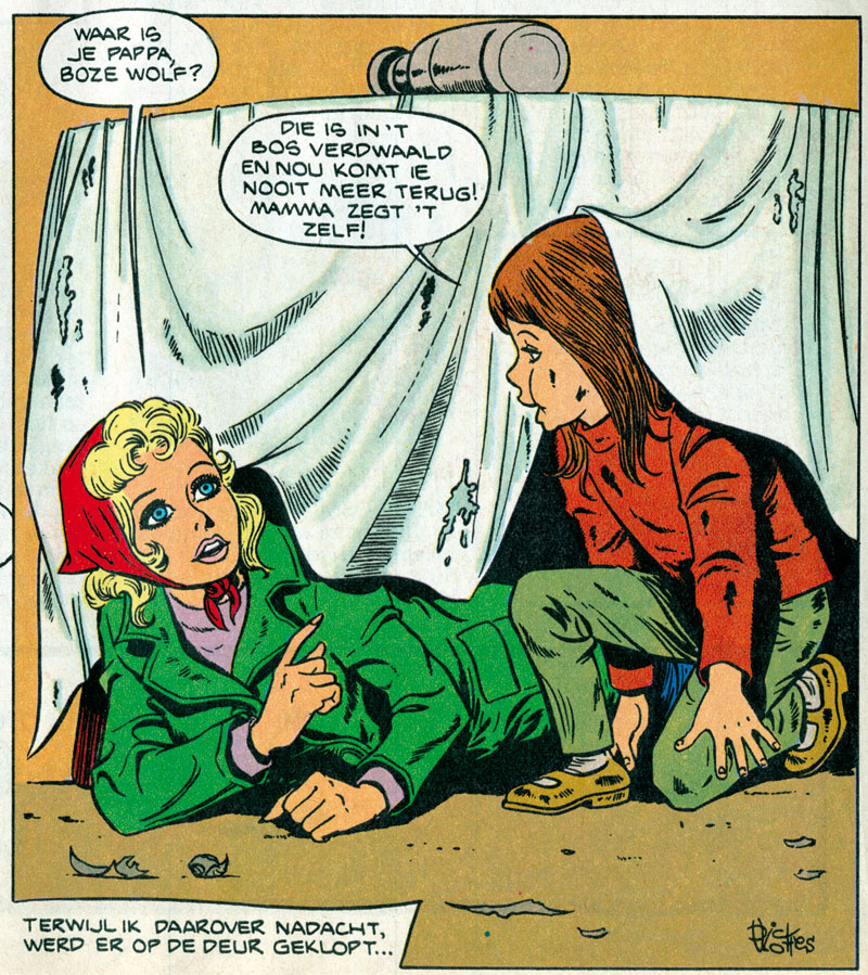 Dick Vlottes was born in 1932 in Uitgeest, in the province North Holland. His father was a gardener. As a child, he read the Flemish children's magazine De Kleine Zondagsvriend, where particularly Burne Hogarth's 'Tarzan' comics thrilled him. He also enjoyed reading Hal Foster's 'Prince Vailiant' and Alex Raymond's 'Rip Kirby', but his true fascination for the art of comics started with the adventures of the female detective 'Rikki Visser', drawn by Jan Dirk van Exter for the Kennemer Dagblad newspaper. Other inspirations were Jean Dulieu's 'Paulus de Boskabouter' comic and the Walt Disney animated feature film 'Snow White and the Seven Dwarfs'. At age 14, Vlottes began drawing his own comics, and then had his first jobs doing advertising illustrations and window dressing. After fulfilling his military service, he fully focused on a career in comics. He took a correspondence art course and studied books about human anatomy, while trying in vain to get a job with the Toonder Studio's, at the time the largest comics production house in the Netherlands.