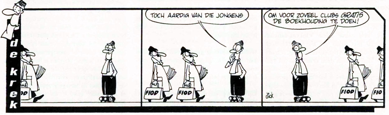 De Krek. Translation: "How nice of those guys... to do the accounting for so many clubs free of charge!" (The FIOD is the Dutch Internal Revenue Service).