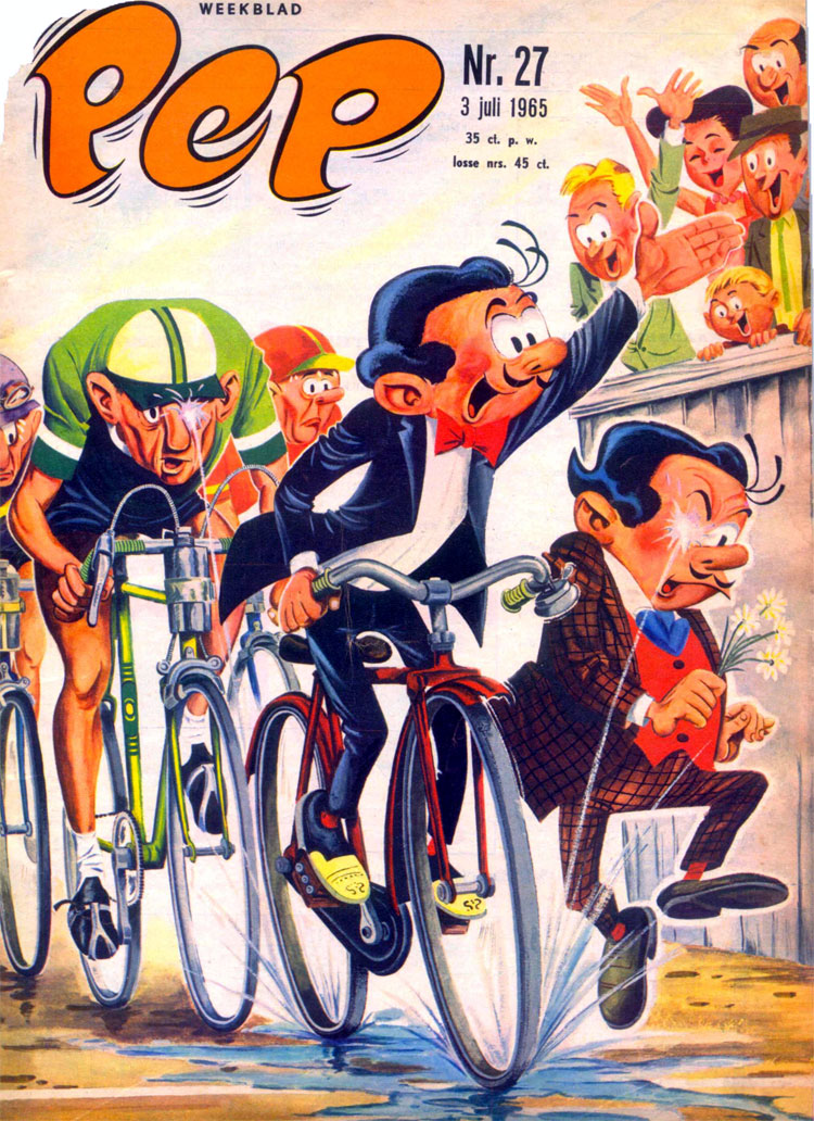 After 'Senmoet', Dick Vlottes left comics for a while and turned to production art, commercial illustration and other work-for-hire, often for licensed properties. His wife Dinie had done the same line of work, as a letterer for both the Toonder Studio's and Swan Features Syndicate (including the 'Marion' newspaper comic by Thé Tjong-Khing). For the comic magazine Pep, Dick Vlottes provided comic story lettering, as well as an occasional cover illustration featuring a licensed, foreign comic hero. At times, he also helped out Hans G. Kresse with the inking of his 'Zorro' comic stories. Vlottes was additionally present at Sjors magazine, doing the colorizations for the reprints of the British 'Billy Bunter' stories (appearing in Dutch as 'Billie Turf'). For the women's weekly Libelle, he also colored the 'Bessie Bunter' ('Bessie Turf') comics.