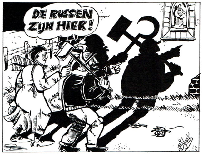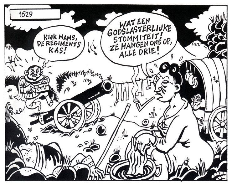 As a student, Berend Vonk developed himself into a politically oriented cartoonist. His early years were characterized by contributions to left-wing fanzines and other publications, while being involved in protests against nuclear power plants and other forms of activism. His work appeared in often subversive magazines like De Gekkenkrant, De Vrije Socialist, De Tribune, Wij Eisen Geluk and Lekker Fris. For the Amsterdam squatter's magazine Bluf, he made a comic strip called 'De Klomp des Doods', about a squatter and his punk girlfriend who discover dangerous state secrets. Vonk's activism was also evident in his comic book debut, 'Pastorale 83' (Beeldspraak, 1982), a Cold War-flavored political satire. In one of his later autobiographical comic stories, 'Bezoek van de BVD' (collected in the 2008 book 'Avonturen, avonturen'), Vonk described he was at one point visited by officers from the National Security Service, who tried to recruit him as a spy. Still, it remains the question how much of this anecdote is true. Vonk's comic stories and cartoons are often based on his own life or actual politics, but then take a surreal twist.