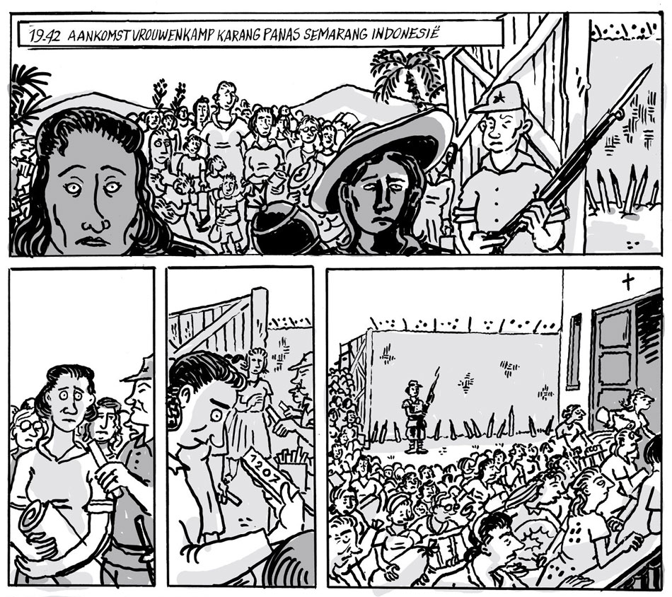 Berend Vonk's comic about his mother's wartime experiences in a Japanese internment camp, printed in the anthology 'Bevrijd' (2019).