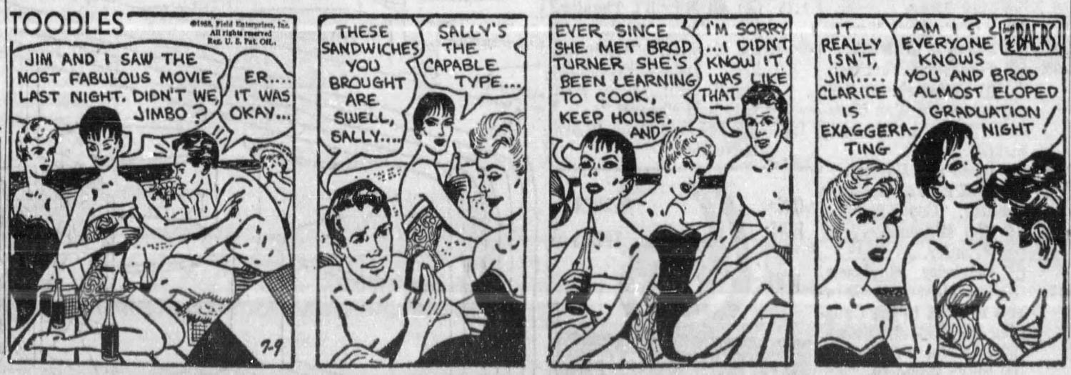 Unsigned 'Toodles' strip from 9 July 1958, possibly drawn by Voorhees?