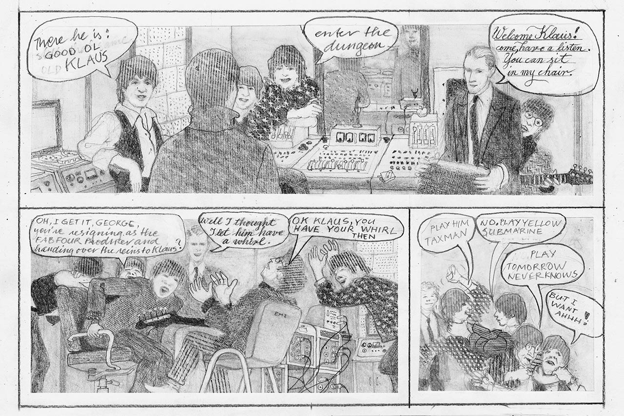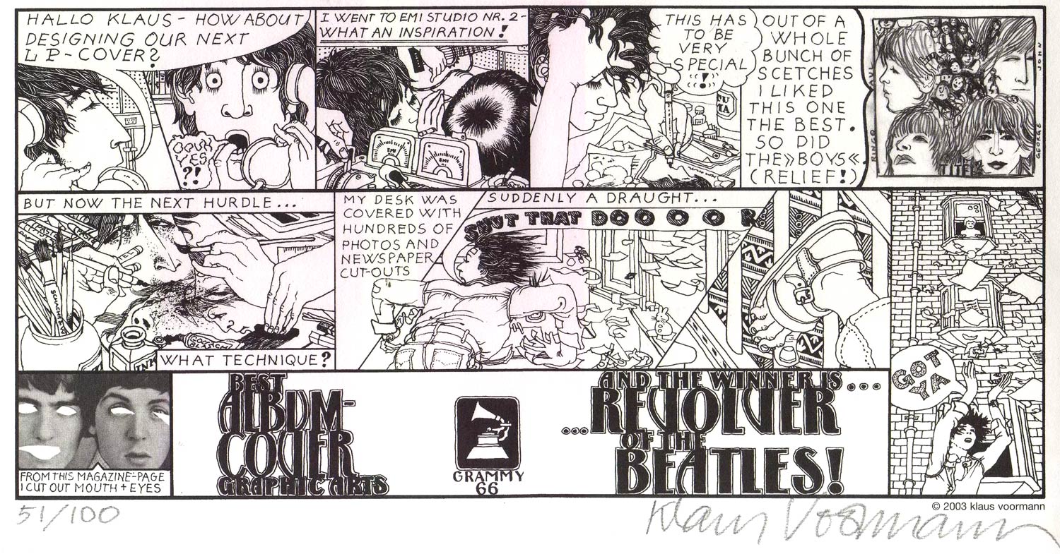 2003 Klaus Voormann print with a comic strip about the creation of the Revolver cover.