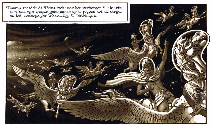In later years, Vos collected his comic stories in his 'Edelpulp' collection, self-published under the artist's own Saturnus imprint. The series has included the volumes 'De Prins van de Paardekop' (1999), 'De Kat in de Karpaten' (2006) and 'Gorgon de Verzengende en Verder' (2007), as well as a portfolio book with both free and commercial illustration work, 'De Edelpulp Collectie' (2011).