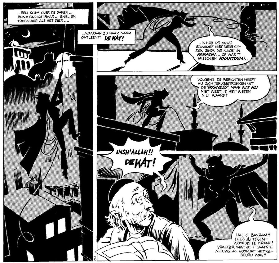 Vos' interest in pulp resulted in a collaboration with writer Martin Lodewijk for a new story with the classic Dutch superhero 'De Kat', originally created in the 1940s by Henk Albers. In 1980 and 1985, Lodewijk wrote two new comic books with a new rendition of the character, of which the first volume was drawn by Hendrik J. Vos, 'De Kat in Constantinopel' (Yendor, 1980). In 1985, a second installment was drawn by Bart van Erkel, but newly planned stories with Adri van Kooten and Eric Heuvel remained unfinished. In 1994, however, Hendrik J. Vos drew the new short story 'De Kat in de Karpaten' from a script by Pieter van Oudheusden, and edited by Martin Lodewijk. Originally intended for an American comic book that never saw the light of day, it was eventually printed in Vos' own self-published short story collection 'De Kat in de Karpaten' (2006).