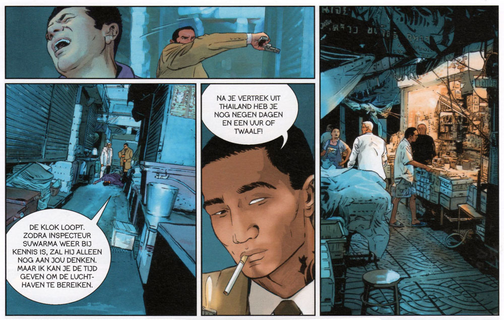 Vrancken and Desberg made about a dozen short stories for À Suivre, before embarking upon the romantic saga 'Le Sang Noir' for Le Lombard between 1996 and 1998. They subsequently started their best-known work, the ongoing political-financial thriller 'I.R.$.' in Lombard's Troisième Vague collection in 1999. The duo added the heroic fantasy series 'H.Ell' to their resume in 2013.