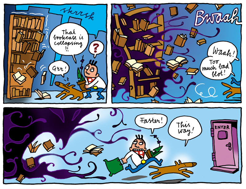 'JanJaap' strip from Algemeen Dagblad, starring Martin Stone, who is depressed when he realizes he's a comic character.