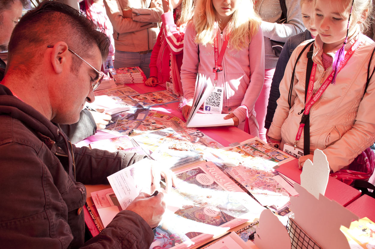 Jan Vriends signing at the annual Tina-dag in amusement park Duinrell (2013).