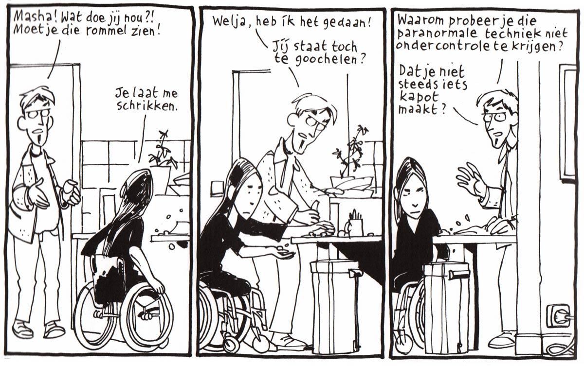 In 2008, Jan Vriends produced the graphic novel diptych 'De Man Die Het Niks Doet' ("The Man Who Doesn't Care") and 'De Man Zonder Gevoel' ("The Man Without Feeling") for publisher Oog&Blik by commission of the Board for the Chronically Ill and Disabled. Both stories start in exactly the same way, but in each version all of the characters suffer from different chronic diseases, which causes different story developments.