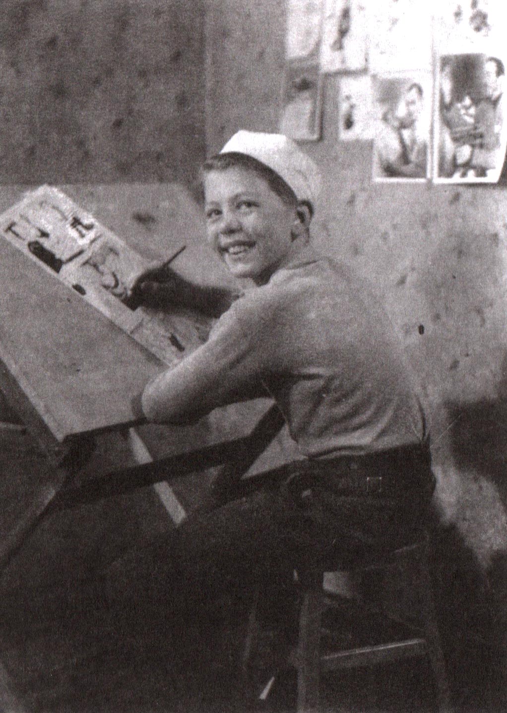 Young Mort Walker at his drawing table in 1938.