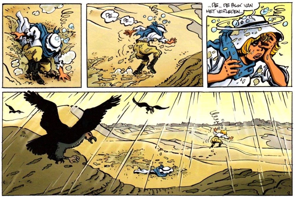 Natacha - 'La Mémoire de Métal' (1974), Dutch-language version. The villain in the final panel is a caricature of Maurice Tillieux.
