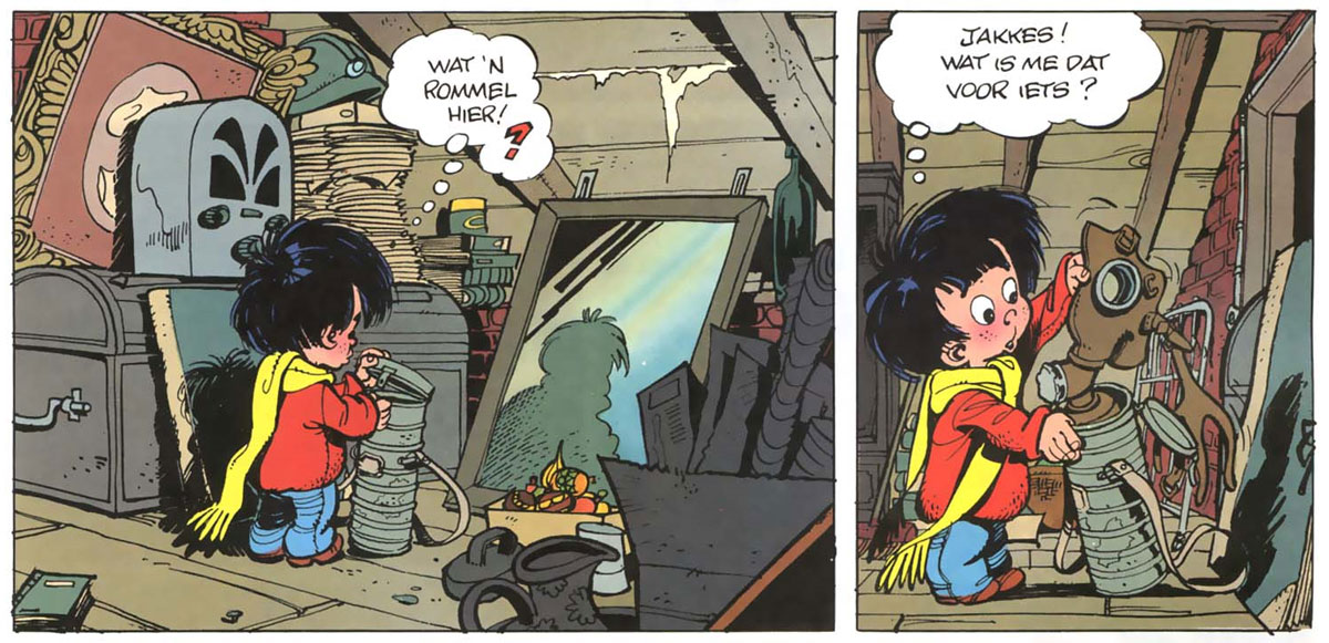 Walthéry's third series 'Le P'tit Bout d'Chique' was also largely based on nostalgia and childhood memories. The poetic strip about a little boy ill at ease in the world of adults was first published in Spirou between 1975 and 1978. In 1989, Marsu Productions collected the initial stories in an album. Three years later, a new album written by Serdu and drawn by Walthéry followed at the same publishing house. Between 1994 and 1998, the series was then continued for another four albums by Walthéry's former tutor Mittéï. In Robbedoes, 'Le P'tit Bout d'Chique' ran in Dutch as 'Rattekopje'.
