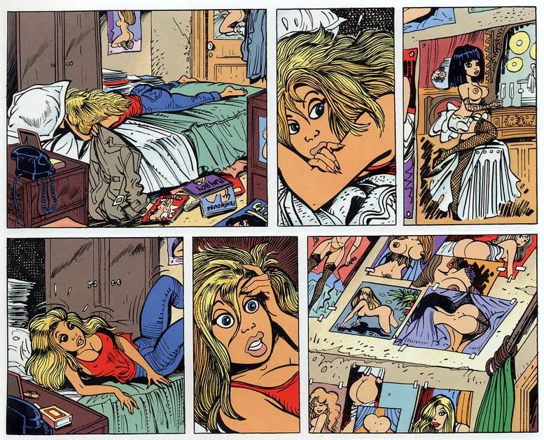 Walthéry, a master in drawing beautiful women, further showcased his talent in the erotic comic 'Betty Strip' (Noir Dessin, 1992) and in 'Une Femme dans la Peau', an adult comic published in 1994 by P&T Production. Scripted by Fritax (Jean-Claude de la Royère) and with background art by Georges van Linthout, the latter tells the story of a man named Antoine, who wakes up in a woman's body. The story was continued in the sequels 'Dans la Peau d'une Femme' (Joker Éditions, 2001), 'Au Malheur des Dames' (Joker, 2002) and 'Johanna - La Dame des Sables' (Joker, 2005), which were all written by Mythic (Jean-Claude Smit le Bénédicte) and drawn by Walthéry in collaboration with Bruno di Sano. In 2014, Walthéry was involved in the launch of another aviation series, this time for Paquet's Cockpit collection. Written by Étienne Borgers and drawn in collaboration with Bruno Di Sano, 'L'Aviatrice' (2014-2016) was about 1930s female air mail pilot Nora Stalle, who is hunted by German counter-espionage in Nazi Germany.