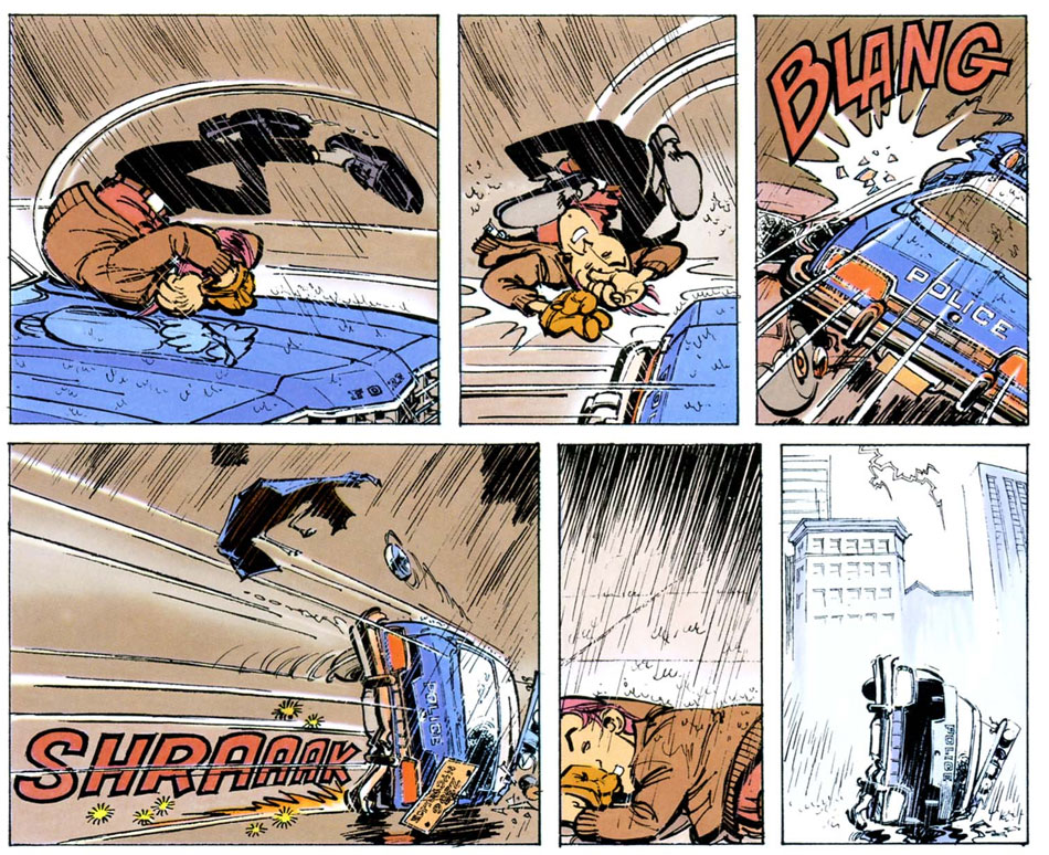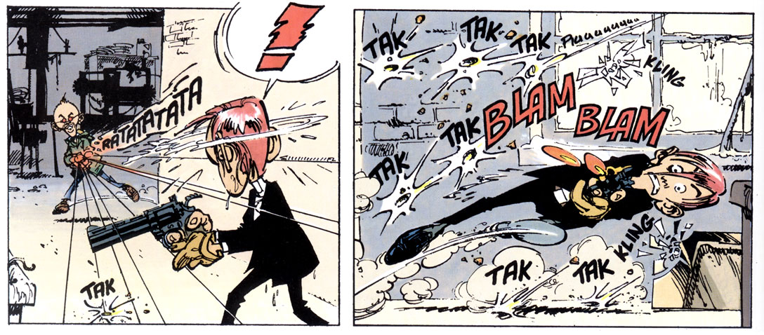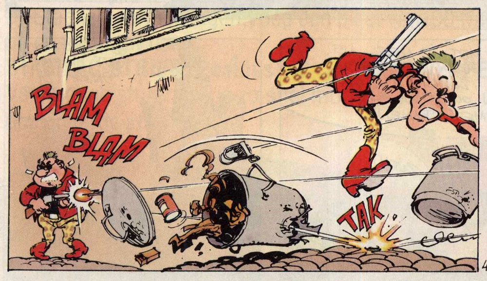In addition to his own series, Warnant worked on a couple of short stories for Spirou on the side. Even before the publication of 'T. O. Wang', he made two short stories in collaboration with Stéphane Colman, published throughout 1980. With Stephen Desberg, he made 'Le Long Voyage', a short story which addressed the topic of lab experiments on animals. In 1984, he collaborated with Tome and Janry on the short story 'P'tit Beurre', followed a couple of issues later by his own short story 'Le Miroir aux Arlouettes'. Warnant's graphic talents did not go by unnoticed. His dynamic drawing style resembled Franco-Belgian comic legend André Franquin, who at one point suggested he'd take over 'Gaston Lagaffe'. Editor Philippe Vandooren paired Warnant with Yann for a comic about the Vietnam war. However, the artist didn't feel at ease with the serious subject matter or the cynical tone of Yann's script, and the project was aborted. Instead he teamed up with 'Spirou' author Philippe Tome for an action-filled crime comic set in New York City.