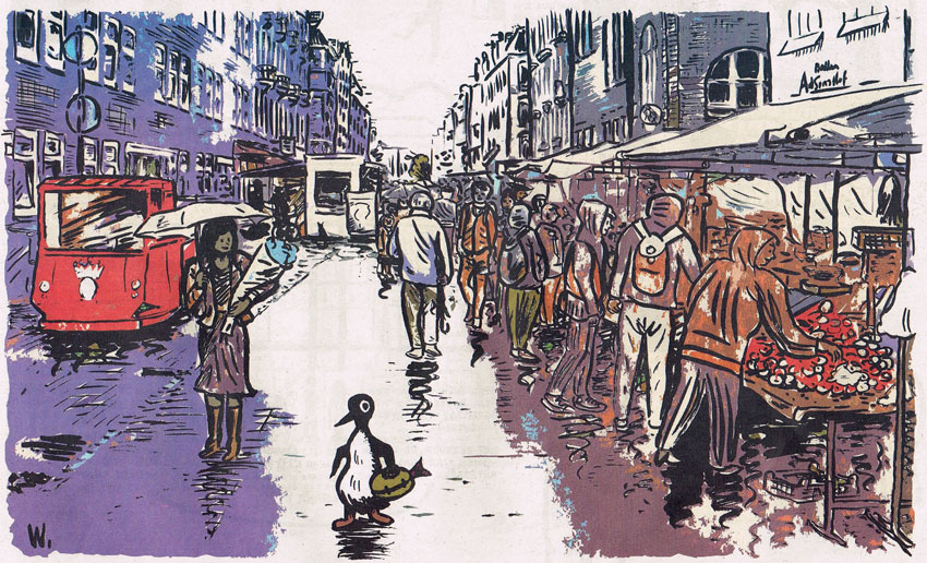 'Een Pinguin in Oud West' (from the comics paper Wat Wil West, January 2014).