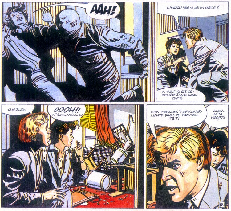In the early 1980s, Keith Watson started working for the Dutch market, taking over the adventures of soccer player 'Roel Dijkstra' from Andries Brandt and Jan Steeman in magazine Eppo. Watson made two books with writer Dave Hunt, and then six more with Jaap Bubenik. In 1989, he revived the original 'Dan Dare' for the new Eagle comic. Among his final comic book work was a comic based on Gerry Anderson's 'Thunderbirds' in 1992. He has also made some notable advertising art for Mobil, Raleigh, Volvo and Vauxhall. Keith Watson passed away from cancer at the age of 59 in 1994.
