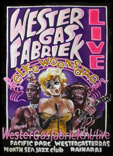 Posters for respectively a concert in Westergas Fabriek and one in Amsterdam comic store Lambiek.
