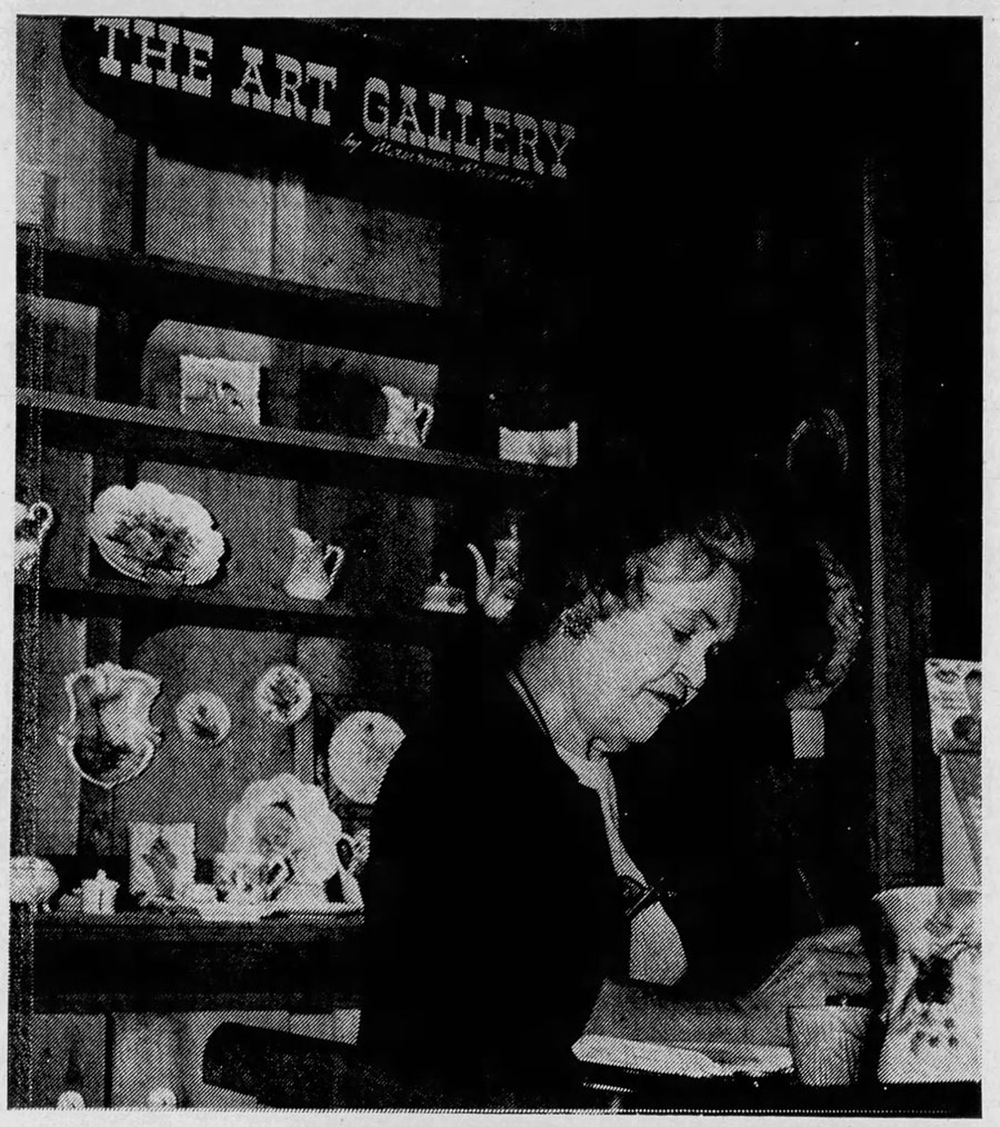 Maurieta Wellman in her own China art gallery, pictured in the Vidette-Messenger of Porter County on 23 November 1971.