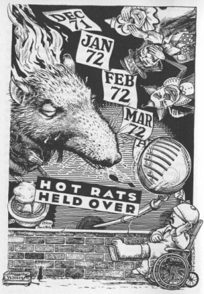 Brother A. West was the illustrator of Frank Zappa's autobiography 'The Real Frank Zappa Book' (1989), which the musician wrote in collaboration with journalist Peter Occhiogrosso. Instead of a serious reflection on his life and career, the book carried Zappa's trademark playful style. To liven up the pages even more, West added several little cartoons and occasional sequential drawings. While not a comic book in the strictest sense, the cartoons follow a clear narrative sequence, namely Zappa's chronological life story. West even makes use of a recurring character: a little man with a black mustache, representing Zappa. The black-and-white drawings and subversive content of 'The Real Frank Zappa Book' give West's drawings a genuine underground comix feel.