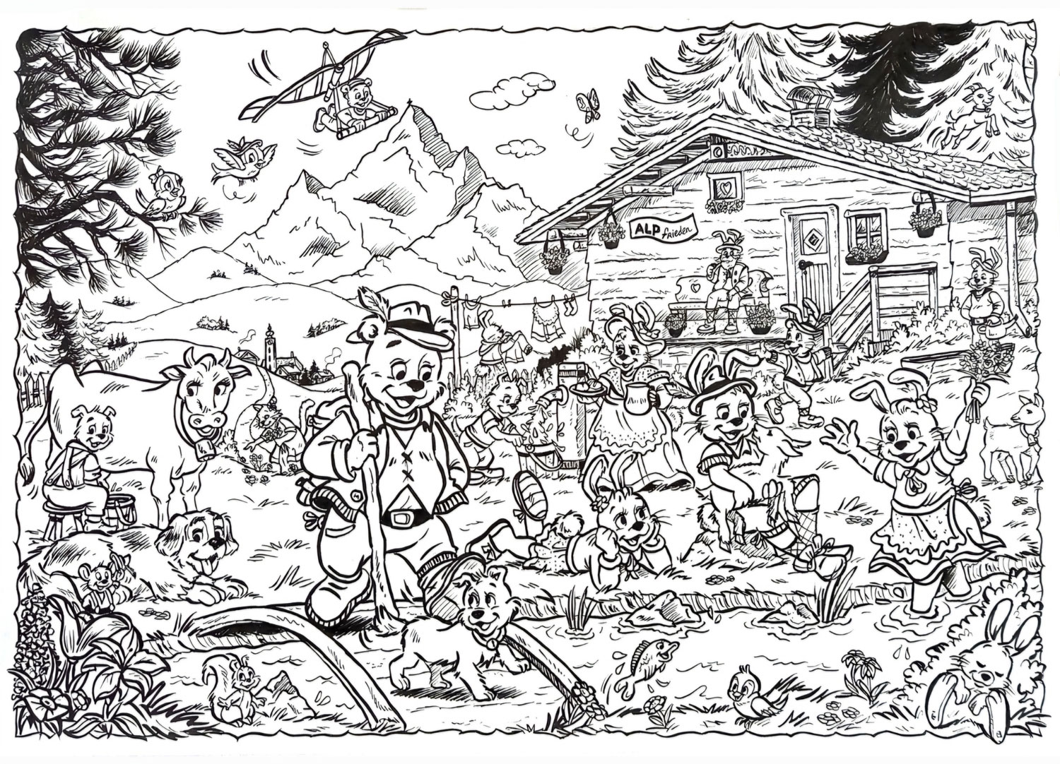 With fellow Groningen artist Frans Le Roux, Westerhoff has made illustrations for a hairdressers' training, as well as drawings for a Children's Book Week newspaper. Other work-for-hire has included birth and wedding cards, posters for Essent, designing the bird mascot Tiko for UMCG childcare, coloring pictures for Videovansint and other artwork related to the annual Sinterklaas festivities. Over the years, he has specialized in creating coloring pictures. Besides Sinterklaas, his drawings have included bunnies, bears, dogs and other funny animals in different locations, such as the beach, a playground, alpine meadows, a camping site and the funfair.