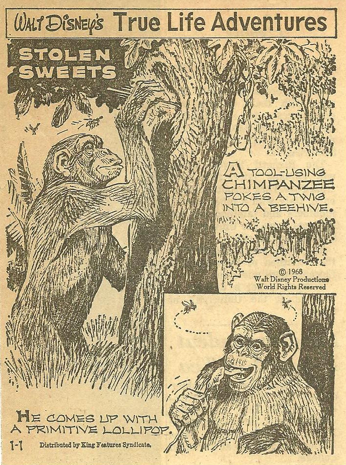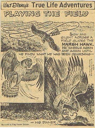 Like all Disney media, even 'True Life Adventures' inspired merchandising. A series of books were brought out with beautiful color photographs. In March 1955 a daily newspaper comic was created for King Features Syndicate, written by Disney animator Dick Huemer, while inbetweener George Wheeler made the illustrations. Huemer had written scripts for comics before, namely Mel Cummin's 'Good Time Guy' (1928-1929) and Paul Murry's 'The Adventures of Buck O'Rue' (1951). Since the 'True Life Adventures' had no actual story, the comics were basically realistic drawings of real-life animals, with biological trivia added next to them. Although 'True Life Adventures' ended its theatrical run in 1960, the comic strip kept running until 14 April 1973. In addition to the newspaper feature, August Lenox drew educational comic stories about animals under the 'True Life Adventures' banner for the comic books by Western Publishing in 1955-1956. Wheeler also illustrated children's books based on Disney films like 'Cinderella' (1954), published by the Whitman Publishing Company.