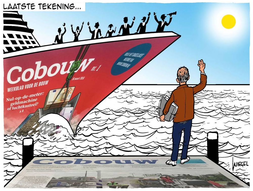 In 2016, at age 89, Wiegel's longtime association with Cobouw magazine came to an end, when it changed from a daily to a weekly publication. Over a period of 55 years, the artist had drawn thousands of cartoons for Cobouw and never missed a single issue. The next year, on 21 March 2017, he passed away. Cobouw printed an "in memoriam", praising Gerard Wiegel's humor, positivity and work ethic.