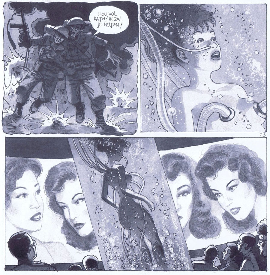 Between 1998 and 2003, Wielaert made several one-shot comics for Robin Schouten's small press magazine Incognito and its companion album collection. Among them were 'Nachtschade' (2000), a series of three black comedy horror stories, and 'Waanklanken' (2001). 'Waanklanken' consists of two short stories, namely the horror tale 'Met De Muziek mee...', and 'De Tol van de Roem' about the side effects of a djinn fulfilling the three wishes of an amateur rock band to become famous. For the same collection, Wielaert also drew the noir detective story 'De Zwarte IJscoman' (2003), scripted by Robin Schouten in what was his debut as a scriptwriter, though the title itself was thought up by Lode Devroe. The story is set in 1947 and unfolds as a film noir about a black ice cream salesman.