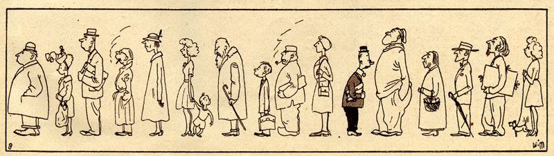 From 1953 on, Van Wieringen and his wife spent many time traveling, and have lived for longer periods in Santa Margherita Ligure, Italy (1956-1965) and New York (1980s), where he made drawings for the Jewish Week. The couple also wrote articles during their travels, which Van Wieringen illustrated with drawings and photographs. Van Wieringen made political drawings for De Telegraaf in the 1960s, and started a short-lived newspaper strip called 'Joris' for Algemeen Handelsblad in 1961. His final work, an illustrated booklet of his poems, appeared in 1995. On 3 July, 1999, Wim van Wieringen passed away at the age of 83.