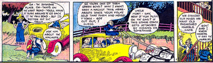 One of his earliest cartoon features was 'Buttons and the Butler' for the Chicago Daily News in 1906 and 1907. During this time with the Tribune, Williams made a large number of cartoon panels and comic strips that mainly dealt with the traditions, customs and daily life of the Midwest. These appeared under a variety of titles, including 'A Strain on the Family Tie', 'Among the Folks in History', 'How To Keep from Growing Old', 'Just Plain Folks', 'Our Secret Ambition', 'Something Ought To Be Done About This', etc.