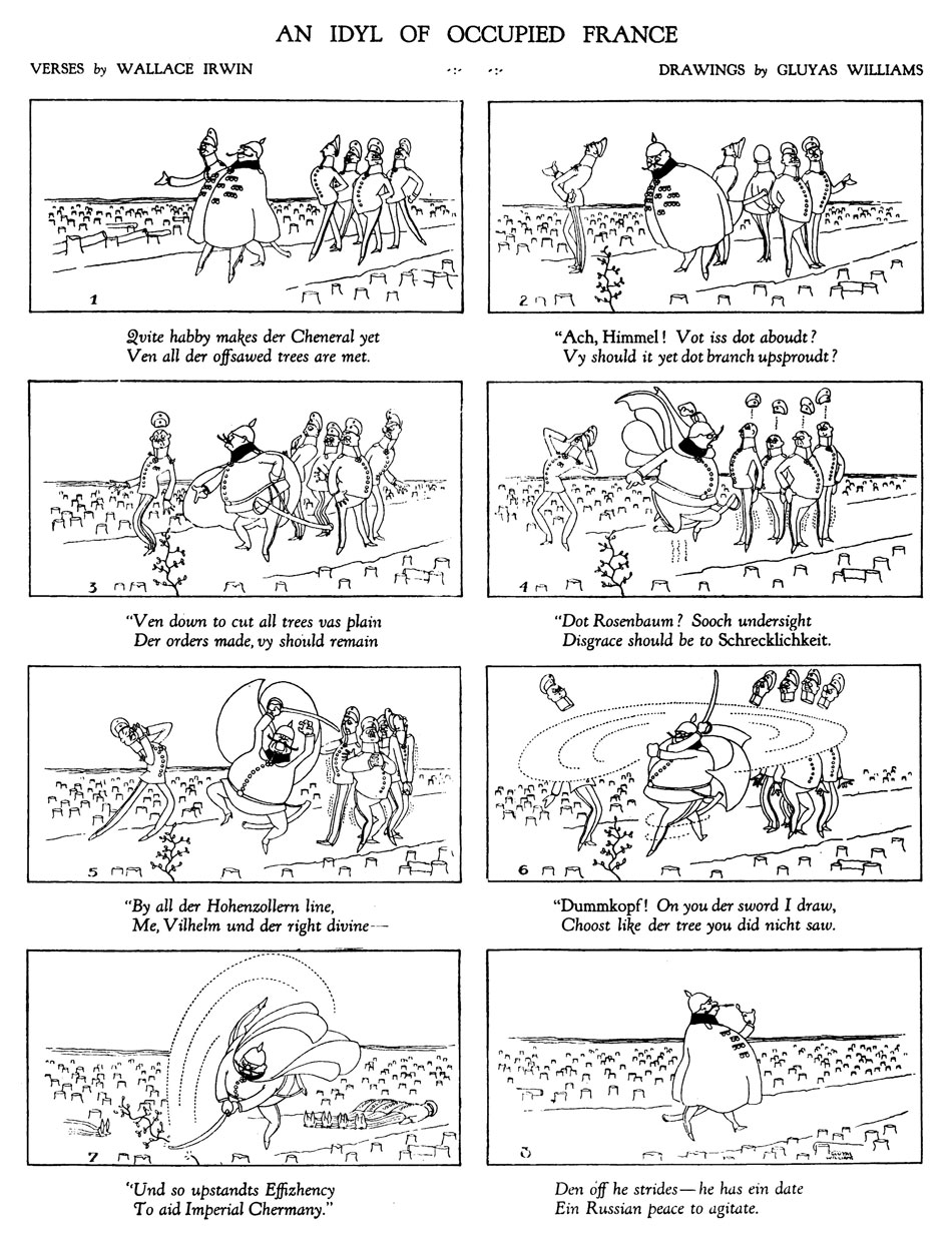 'An Idyl Of Occupied France' (Collier's, 13 April 1918), ridiculing German emperor Wilhelm II.
