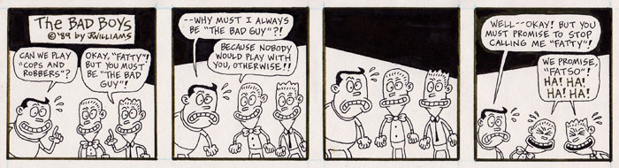 Williams had several of his one-shot creations published by Fantagraphics from 1990 to 1995, a period he mostly spent in Seattle. His 'Crap' series ran for seven issues from 1993 to 1995, and among his other Fantagraphics titles are 'Bummer', 'Damnation' and 'Completely Bad Boys'. He additionally released 'Fun House' through Starhead Comix and 'Bad Comics' through Cat-Head Comics, and made a comics biography about musician Wild Man Fischer with Dennis P. Eichhorn for Real Stuff in 1993. Recurring characters by Williams are 'Skinboy' and the 'Bad Boys'. His final work in the comic industry was writing the comic book adaptation of 'The Little Shop of Horrors' for Roger Corman's Cosmic Comics in 1995.