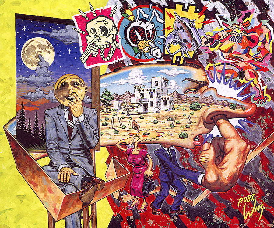 Robert Williams is an American underground comix artist, best remembered for his series 'Coochy Cooty' (1969). He is also the founder of the popular art magazine Juxtapoz Art & Culture Magazine. Yet he is far more famous today as an extravagant and highly controversial painter. His work is a bizarre and chaotic mutation of various pop culture elements, including comics, rock 'n' roll, psychedelica, surf culture, pulp novels, film posters, trading cards and the "hot rod" phenomenon of the early 1960s. Williams refers to his style as "conceptual realism". The obscene and disturbing imagery has often led to accusations of sexism. At the same time, he is one of the bestselling graphic artists.