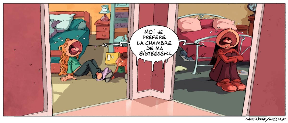 In addition to his daytime job, William Maury created some black-and-white comics inspired by his two daughters, Wendy and Marine. He posted them on the Baywin.net forum in early 2006, and then on his own blog, which he called 'Un Air de famille'. The project caught on, and by 2007 Maury signed a deal with Éditions Bamboo to create an album series. 'Un Air de Famille' (2008) became the title of the first installment, while the series was renamed to 'Les Sisters'. For the plots, Maury was paired with Christophe Cazenove, one of the top writers of Bamboo's humor series. From now on, the artist signed his work with merely his first name, William.