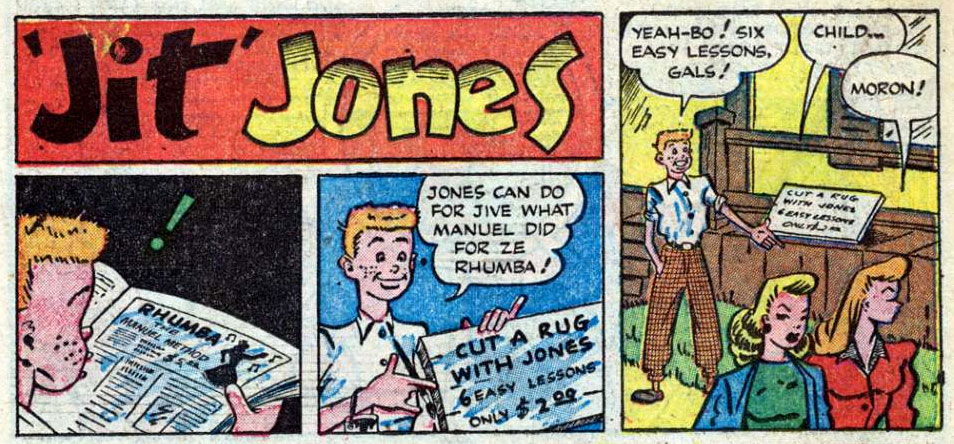 Charles W. Winter was born in 1918 in Brooklyn, New York. In the period 1945-1957, Winter drew comical features for companies like Eastern Color (Jingle Jangle Comics), Hillman (Punch and Judy Comics, Clue Comics), Novelty Press (Frisky Fables), Holyoke Publishing (Sparkling Stars), Star Publications (Holiday Comics), St. John Publishing (Abbott and Costello Comics, The Texan) and Farrell (Super-Cat). These were mostly one-shot gag cartoons or illustrations, but also more regular features (gags and short stories) like 'Thorny the Cactus', 'Hank and His Whale' (both Punch and Judy Comics), 'Jit Jones' (Sparkling Stars), 'Diggy the Derrick' (Frisky Fables, Super-Cat) and 'Justin Tyme' (Abbott and Costello Comics).