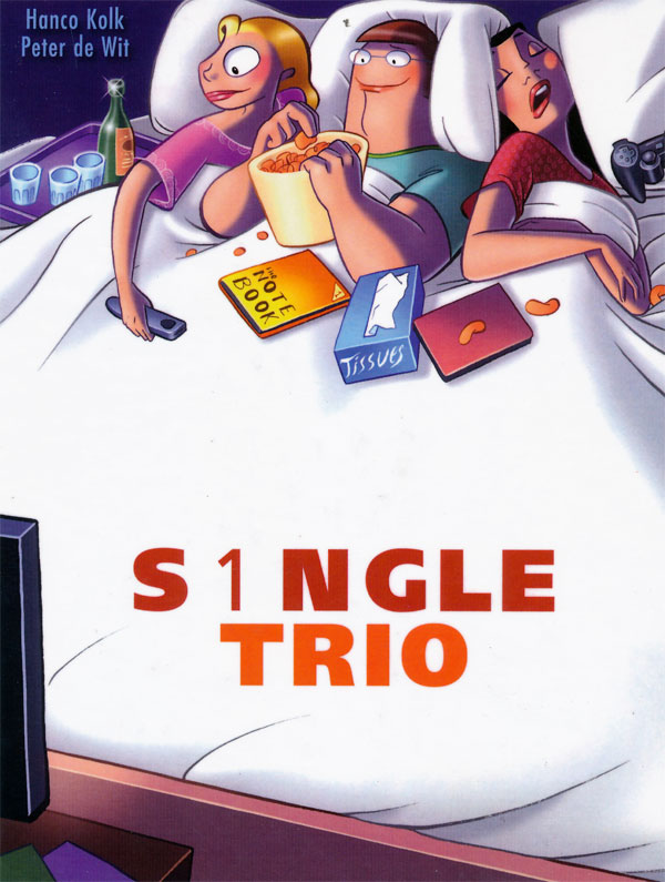 On 29 September 2000, a new newspaper comic by Kolk and De Wit, 'S1ngle', debuted in Het Parool. The gag-a-day comic stars three single ladies who work as nurses in a hospital. Many episodes deal with their frustrating experiences with male partners, as well as the contrast between their personalities. Fatima Prins is a multiracial girl, whose father is Moroccan. She is the dreamy type and somewhat naïve at times. Recurring gags feature her philosophising about love from the comfort of her lazy chair. At home she visits dating sites, but only her mother ever seems to respond to her comments. Nienke Meppelink is the largest of the three and wears spectacles. Due to her chubby posture and blunt, no-nonsense attitude she can be quite intimidating. Several gags feature her phoning her mother, whom she never ceases to blame for all of her problems. Another running gag is her grumpiness whenever she is on her period. Many people are scared to death during her time of the month and refuse to be in her presence. Stella Deporter, the black-haired smoker of the three, is the stereotypical man-eater. She's had so many partners that her friends occasionally find out they're dating one of her numerous ex one-night stands. The only thing to shake off Stella's arrogance is when people guess her correct age.