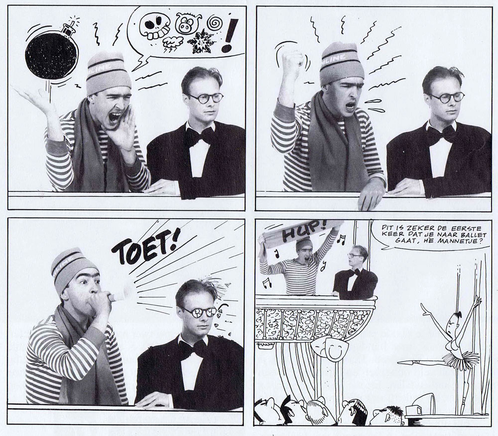 'Mannetje en Mannetje' (Sjors & Sjimmie Stripblad #15, 5-17 September 1988). Translation: "I assume this is the first time you ever attended a ballet, isn't it, Little Men?"