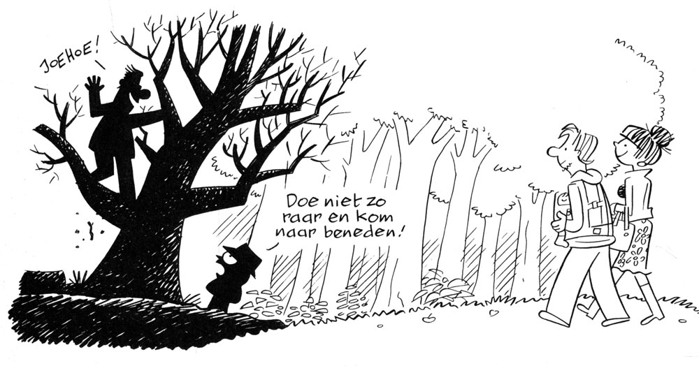 Peter de Wit was born in 1958 in Beverwijk, near Heemskerk. His father was a cattle farmer, who was also active in gardening. The family later moved to Assendelft, in the Zaan region. De Wit grew up reading magazines like Sjors, Robbedoes, Stripschrift and Vivo Magazine, which ran Hal Foster's 'Prince Valiant'. At school he caricatured teachers, much to their disapproval. At home he drew comics. By the time he was 14, he was certain he wanted to become a cartoonist. Nevertheless, he went on to study Finnish and Hungarian at the University of Groningen, but dropped out after only three weeks because he realized he was only kidding himself: cartooning was his one and only goal. Among his graphic influences were Mort Walker ('Beetle Bailey'), Gordon Bess ('Redeye'), Brant Parker ('The Wizard of Id') and the work of Morris, Willy Vandersteen, Bob de Moor, Virgil Partch and Tex Avery.