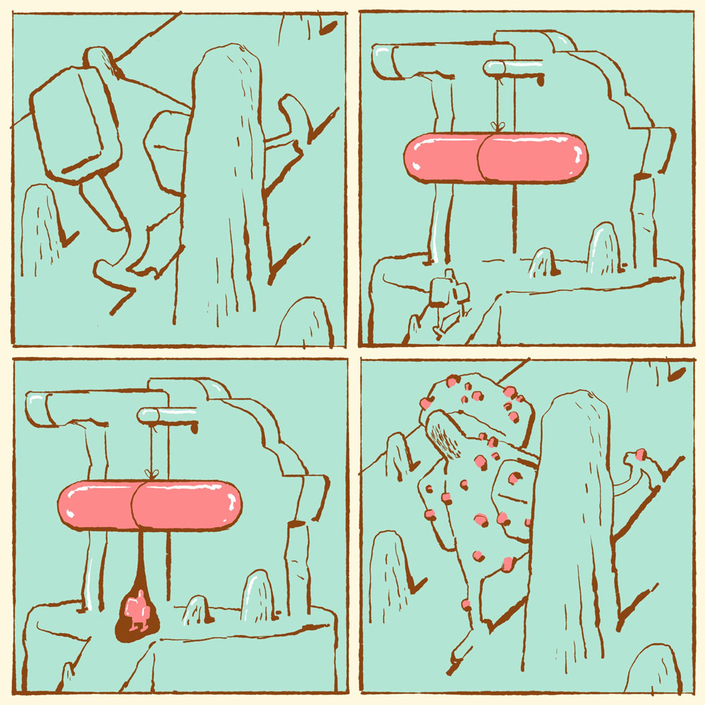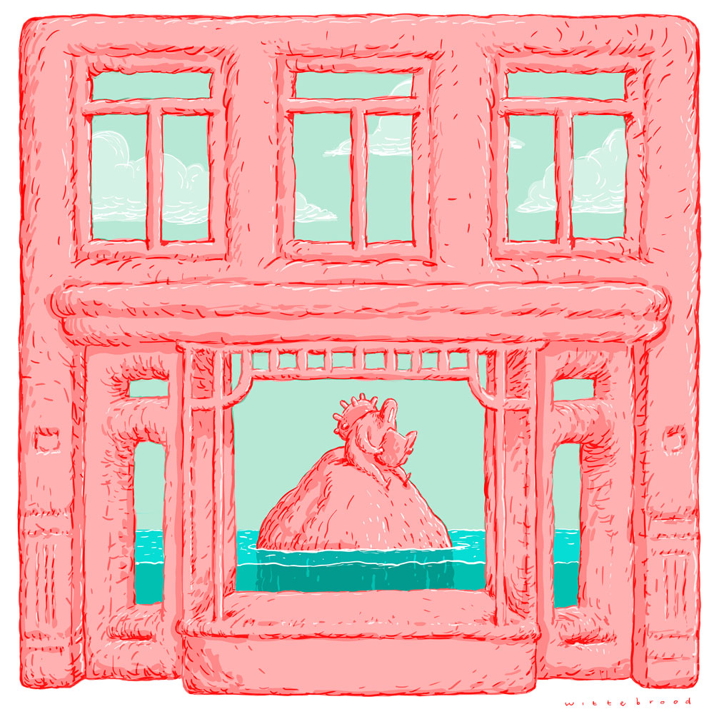 In his spare time, Wittebrood experiments with free-form abstract illustrations and comic art, which he posts on his social media channels. Made without an initial plan or concept, these personal works explore his fascination for human behavior, islands, rock masses, films, video games, toys, dioramas and the absurdities of everyday life. He has additionally been working on a personal experimental comic called 'Trenchboy'.