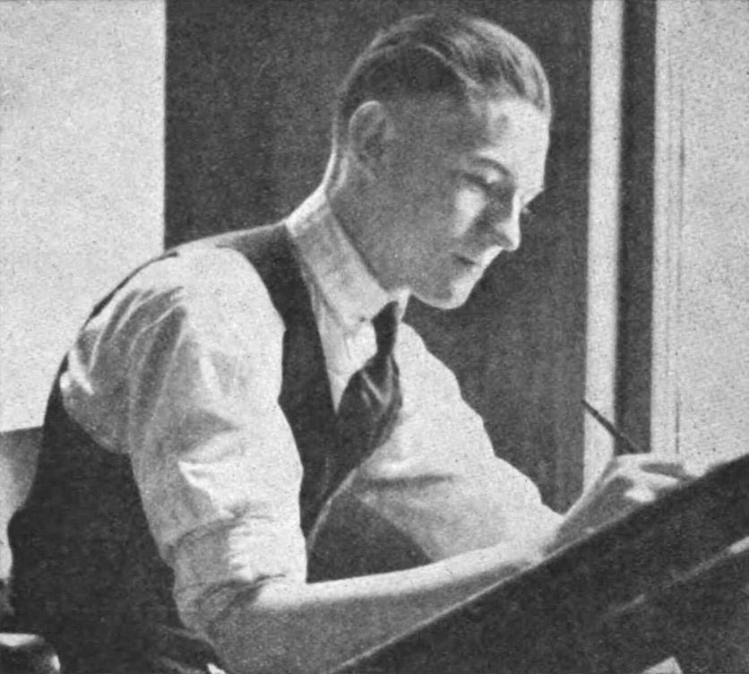 Elmer Woggon was born in 1898 in Toledo, Ohio, as the son of a baker. In 1917, when the United States got involved in the First World War, Woggon was drafted. Back in civilian life he worked as a stock clerk and multigrapher, while studying art through the Landon and Federal School cartoon correspondence course. He was such a good student that he was featured twice in the school's official advertisements, both in 1919 as well as 1921. His graphic career started off at the Toledo Blade, where he debuted as a cartoonist in 1918 and worked his way up to being an art editor.