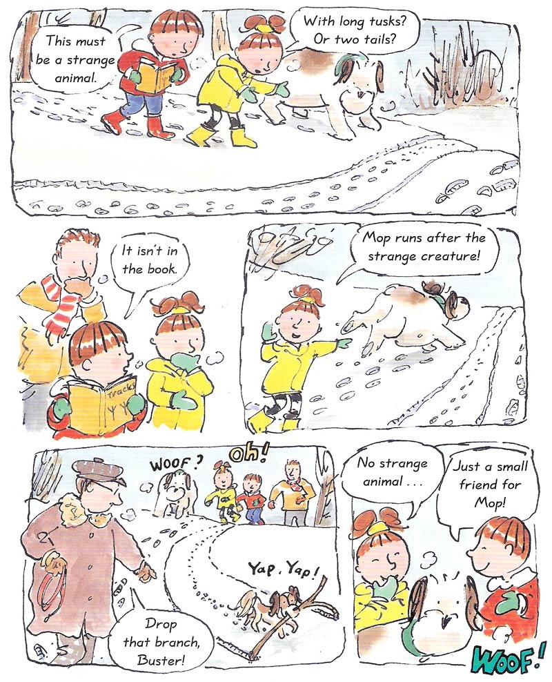 De Wolf is married to Martine Schaap, who has worked as a publisher for Gottmer, Unieboek and Ploegsma. The pair made a monthly comic strip called 'Mops and Family', starring a brother and sister and their sheepdog Mop, which was largely based on their own family life. It was published in the American children's magazine Ladybug by Cricket Media from December 1995 until December 2007, and then in four booklets with new stories: 'Mop to the Rescue', 'Mop and the Birthday Picnic', 'Mop's Mountain Adventure' and 'Mop's Backyard Concert'.