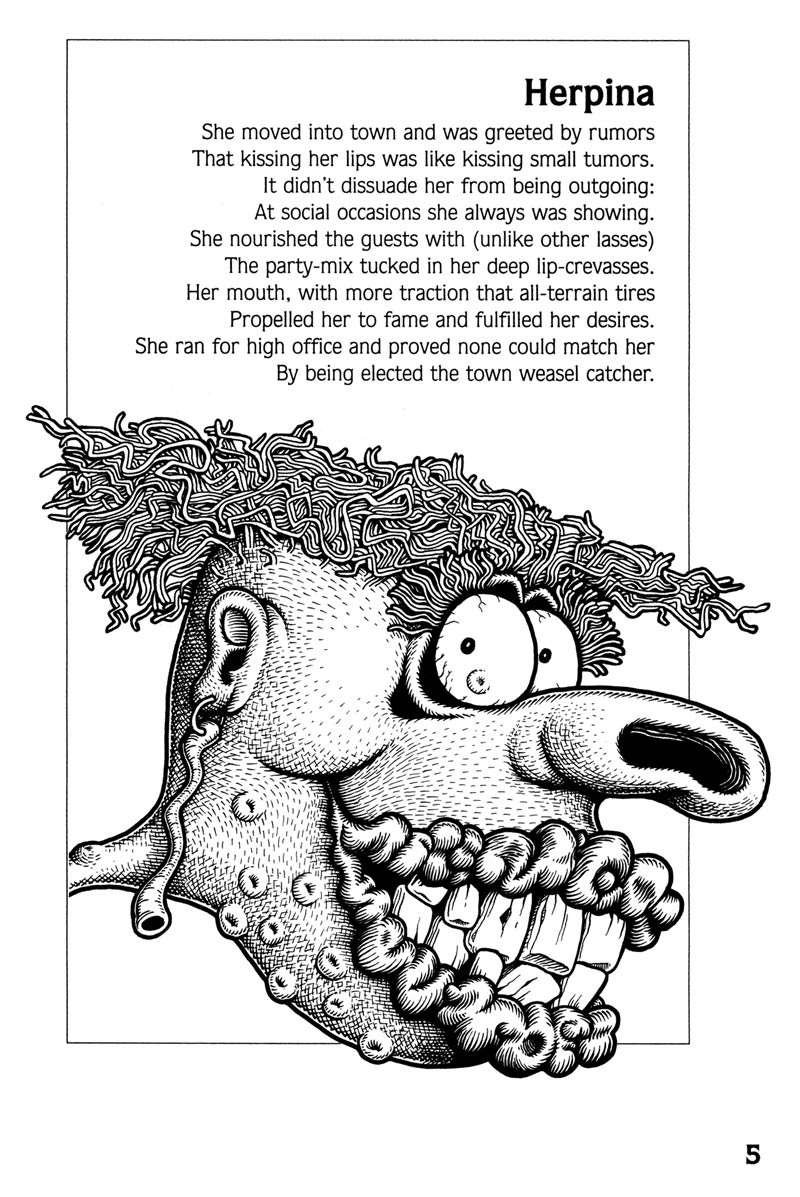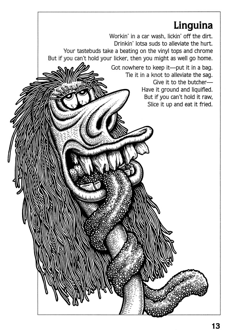 Monte Wolverton has been involved in several reprint editions of his father's comic book work. Together with Michael T. Gilbert, he drew a two-page introduction comic to the 8th issue of 'Mr. Monster's Super Duper Special' (Elipse, 1987) dedicated to Basil Wolverton monster stories. He has written forewords and introductions to reprint editions by Dark Horse Comics and Fantagraphics, and adapted his father's style for the illustrations in 'Lena's Bambinas' (Fantagraphics, 1996). The book featured equally grotesque family members of Lena the Hyena, a repulsive girl drawn by Basil Wolverton for Al Capp's 'Li'l Abner' strip in 1946. Monte Wolverton also edited the Fantagraphics collection 'The Wolverton Bible' (2009).