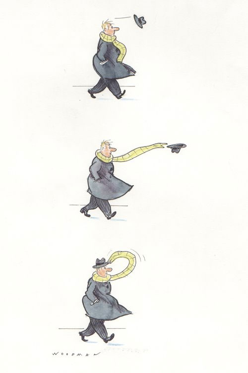 In 1962, Woodman sold his first cartoon to the Saturday Review. He worked a variety of day jobs until in 1975 The New Yorker began running his cartoons regularly. His first New Yorker cartoon appeared in print on 10 November of that year. Over the course of two and a half decades, he made 145 cartoons for them. His final drawing was published on 6 January 2003. Woodman's drawings also appeared in Audubon, Gourmet Magazine, The New York Times, National Lampoon and Hugh Hefner's Playboy.