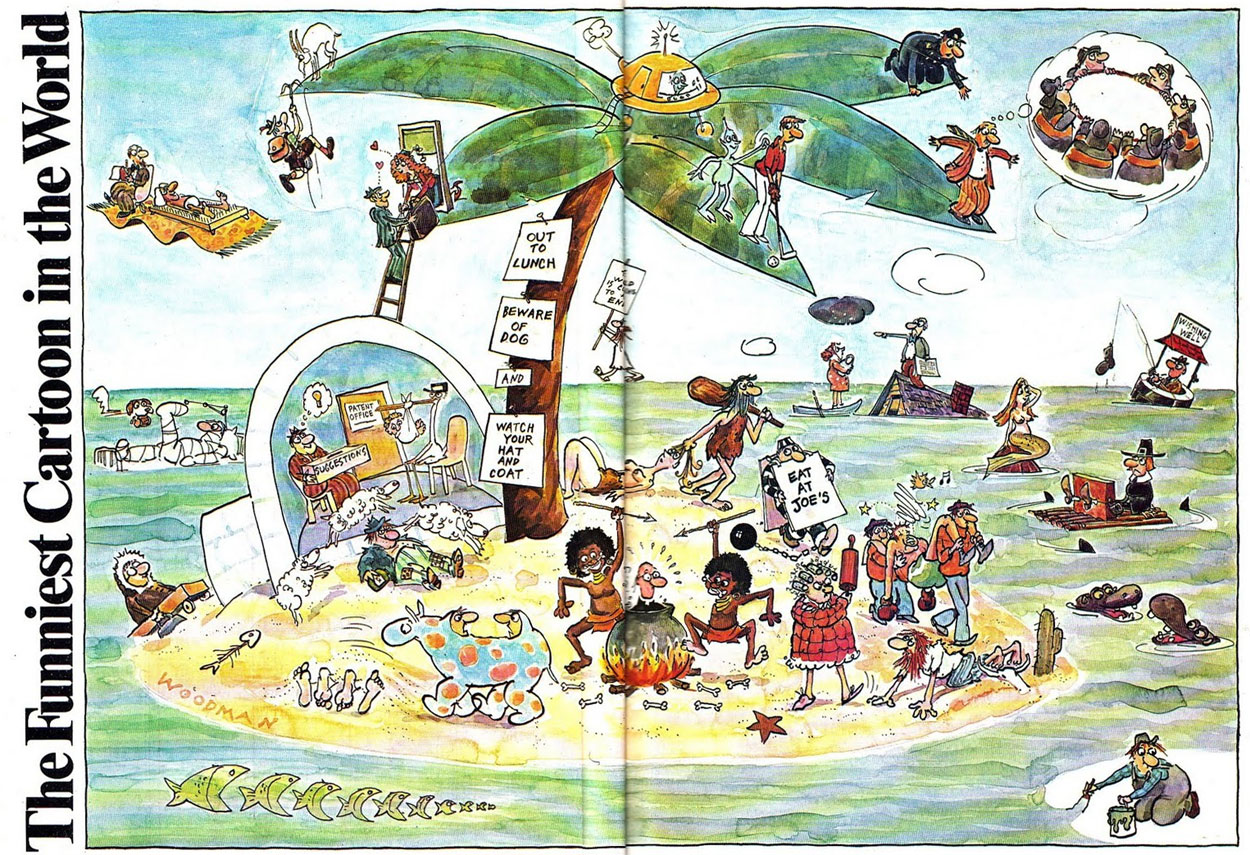 Cartoon for the May 1973 issue of National Lampoon, spoofing the clichés of magazine cartooning.