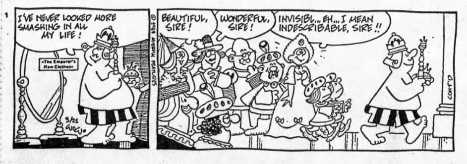 Wejp-Olsen returned to the US market with 'The Tales of Hans Christian Andersen', daily comic strip adaptations of stories by Denmark's famous storyteller. Between 1988 and 1989 Asterisk Features distributed comic strip versions of 'The Ugly Duckling', 'The Emperor's New Clothes', 'The Flying Suitcase', 'Big Claus and Little Claus', 'The Chinese Nightingale' and 'The Little Mermaid'. The feature was also used in the "Newspapers in Education" program, teaching American school children about the life and work of Andersen. In Denmark 'H.C. Andersens Eventyr' was published in Ekstra Bladet.