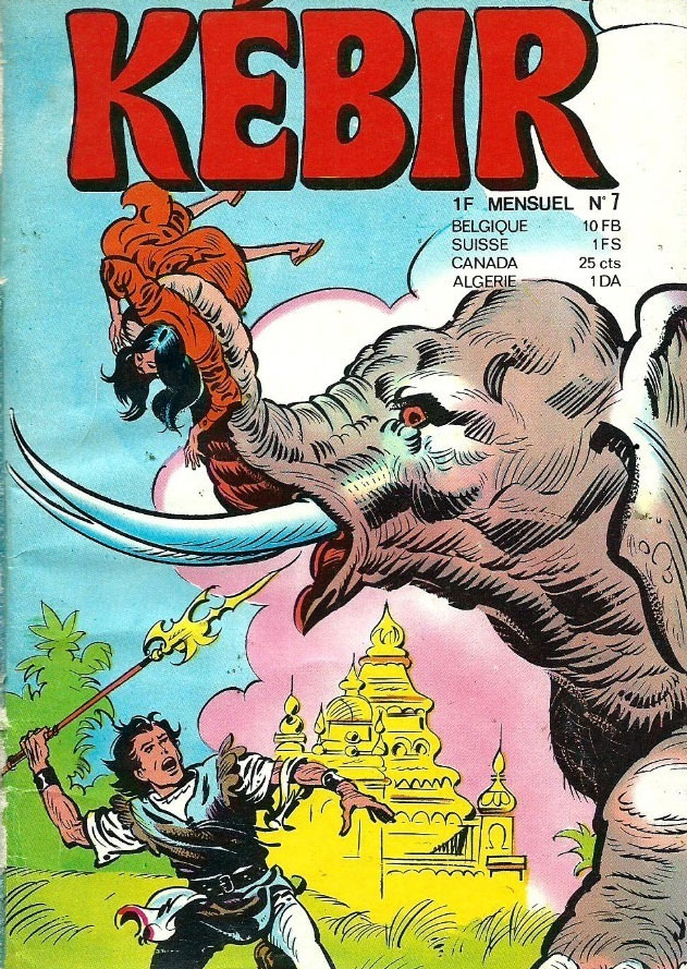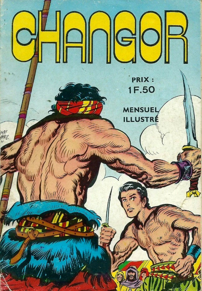 'Karaoglan' was one of the few Turkish series to gain fame outside of the borders. In 1971 Suat Yalaz moved to Paris, France, because filming the French-German-Turkish co-production 'Yüzbasi Kartal' ('Captain Kartal', 1970), a spy movie, had turned into a financial disaster. In France, he continued to work on his 'Karaoglan' comics. The publishing house Lutèce released a first series of French translations under the title 'Changor' in 1971. After six issues, the comic was picked up by the Société Française de Presse Illustrée (SFPI) under the title 'Kébir' in a monthly (1971-1975, 73 issues) and a biweekly series (1975-1977, 46 issues). The books also contained back-up features like Gabi Arnao's 'Mol et Dendur' and Nicola Del Principe's 'Kado, petit Prince de la Brousse' and 'Pappys Bill', while Pierre-Léon Dupuis was an additional cover illustrator. From there on, the 'Kébir' books also found their way to the other French-speaking parts of the world, including the North African countries. They were also translated to English and Arabic (in Iraq it was called "Desert Eagle"), while a planned Russian edition was aborted.