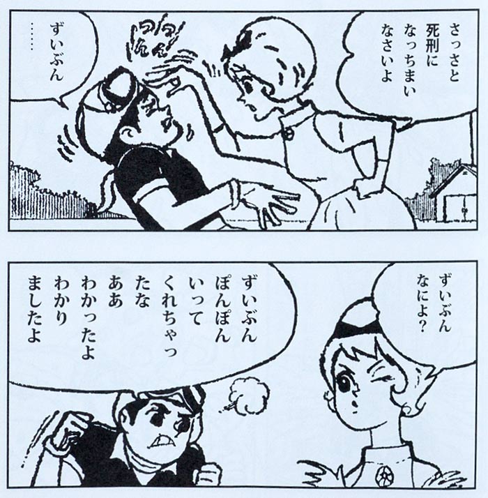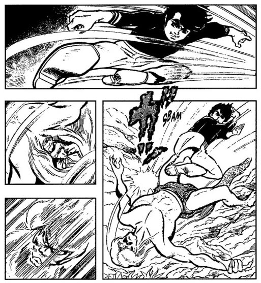 The Yoshida Brothers made a name as creators of many sports, costume drama, science fiction and war comics, as well as the racing comics 'Pilot Ace' (1960-1964), 'Mach Sanshiro' (1960-1961), 'Hayabusa Q' (1961-1963) and 'Speed Bun-Chan' (1962). Other titles produced during this period were 'Iron Arm Rikiya' and 'Boy Ninja Squad Moonlight'. In 1959, Tatsuo Yoshida even received a thrilling honor when DC Comics provided him with the task of creating a 'Superman' comic series for the Japanese market.