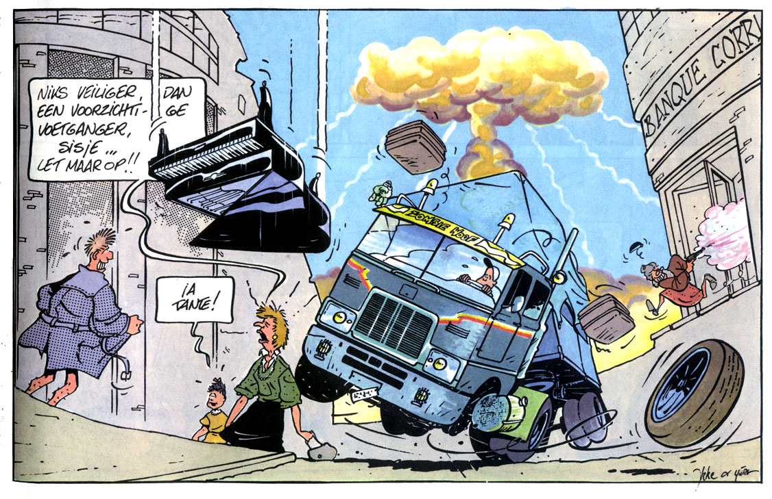 In 1992, Yurg collaborated with Tony Beirens on a celebrity comic about the Flemish pin-up Wendy van Wanten. Van Wanten gained fame in the late 1980s thanks to her appearances as announcer in the late-night erotic show 'De Pin-Up Club', which made her a regular panel show member and launched her pop music career. Her comic strip, 'Wendy Stript Ze!', was prepublished in Panorama, which allowed for a lot of nude scenes and other erotic innuendo. Two albums, 'De Privé-Perikelen van Wendy van Wanten' (1992) and 'Wendy Trekt Aan Het Langste Eind' (1993), were published by Loempia - the same publisher responsible for other Flemish celebrity comics, such as 'Jean-Pierre van Rossem' (by Erik Meynen) and 'Urbanus' (by Urbanus and Willy Linthout). Like most comics based on a media craze, the 'Wendy van Wanten' comics failed to gain much interest beyond the hype and have nowadays faded away in obscurity.