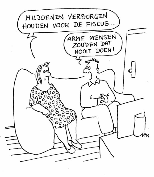 Translation: "Keeping millions a secret for the tax collectors...". - "Poor people would never do something like that!".