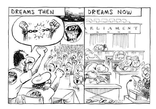 Sticker by Zapiro, issued by the U.D.F. (1980s).